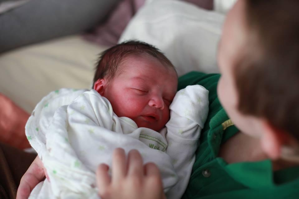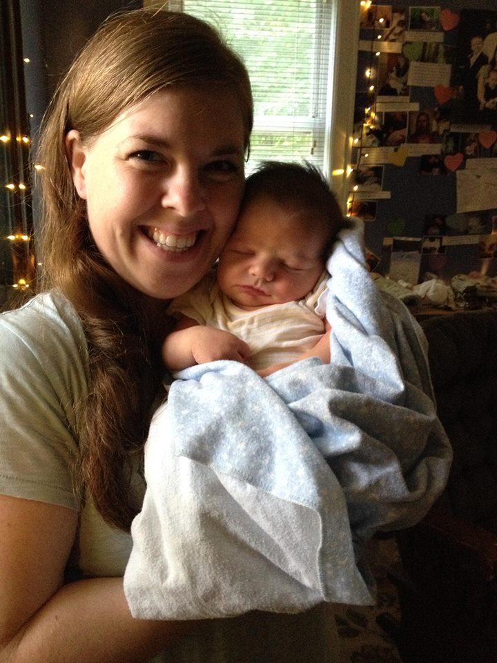 I sat on the floor for a little while just rubbing his back and trying to get him to nurse, but he wasn't really interested. Roxanne showed up then, and we woke up Gabe so he could come down and see the baby. He had wanted to be be there for the birth, but I think it worked out that he just got to be there immediately afterwards. After a few minutes I felt strong enough to go upstairs. Tari helped me up to our room, and I was able to lay down, which was nice. Right around that time Anne showed up. She was able to deliver the placenta, and she checked to make sure everything was good. I didn't tear at all (yay!) so I didn't need stitches. I also didn't tear with Asher, so I knew that would make recovery much easier! Gabe cut the cord, which I think he found a little more disturbing than he had planned. He had to go take a breather after that, and I don't blame him. I think he liked being able to help though.